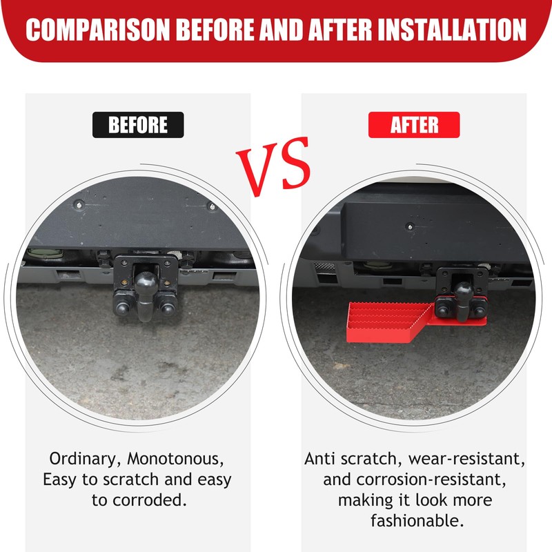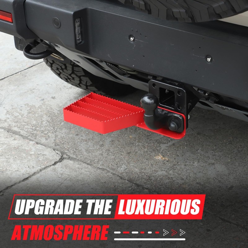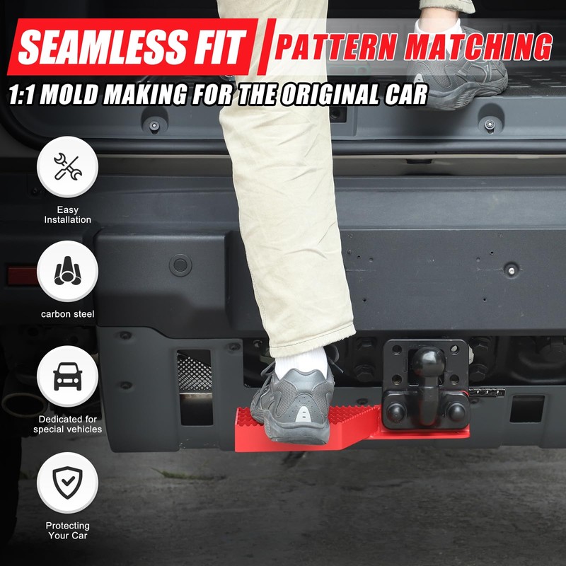 - UNIQUE DESIGN: The trailer hitch pedal is designed according to the original car design, retaining the location of the trailer hitch, which makes it easy to install the trailer hitch, and the grain on the pedal also has a non-slip function to ensure solid footing.