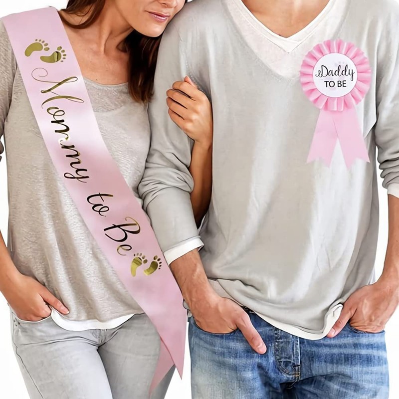 - Paquete Incluido: Banda Mommy to Be*1, Insignia Daddy to Be*1; Con esta banda y este cinturón tan chulos para baby shower, podrás hacerte fotos divertidas y monas con tu familia y crear recuerdos inolvidables.