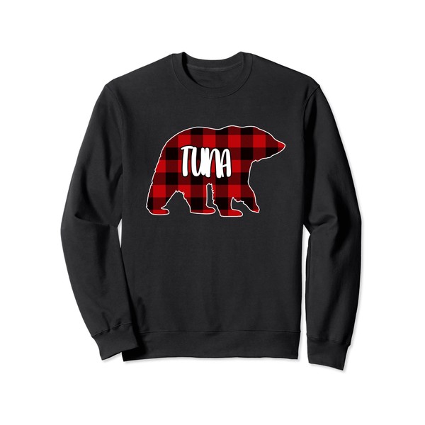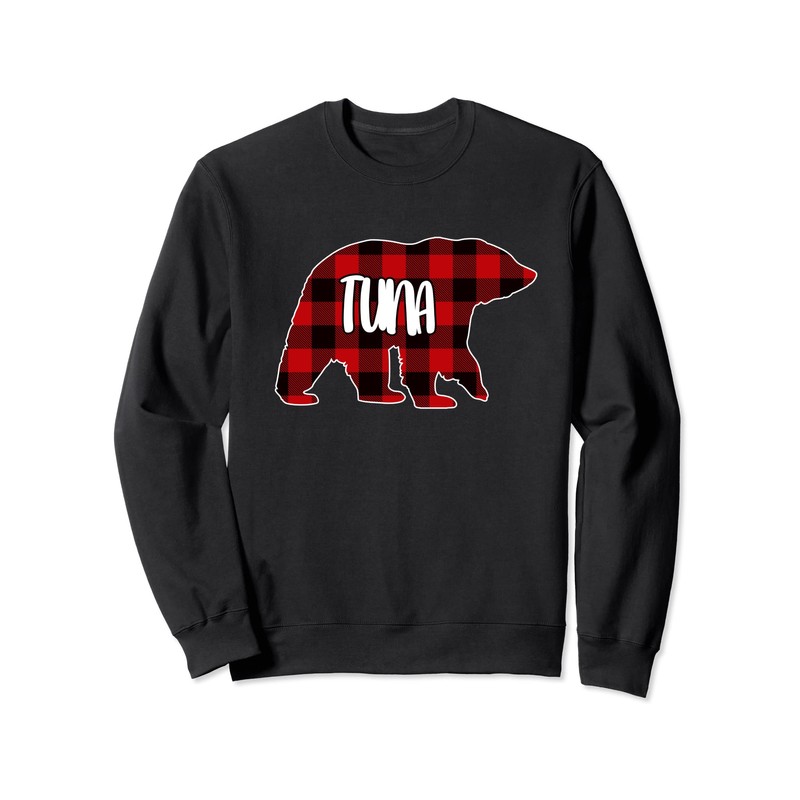 Tuna Bear Custom Red Buffalo Plaid Christmas Pyjamas Sweatshirt, black