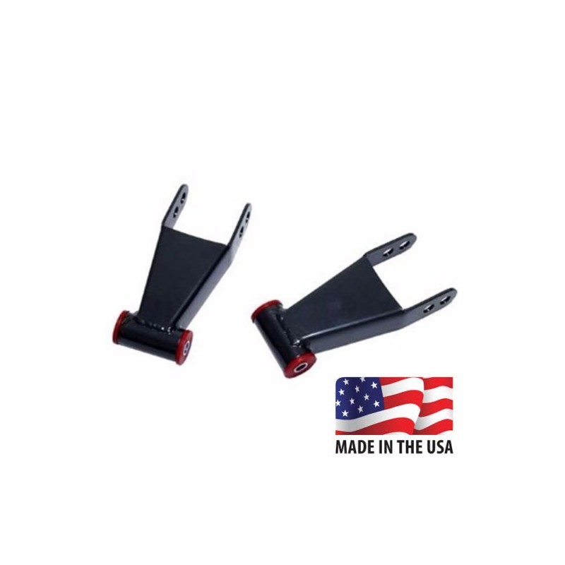 What you get: A pair (2) of shackles Our shackles are made with 3/16 steel. They are also powder coated for rust and corrosion resistance. This is a bolt on application simple remove your stock shackles and install our shackles. This will take about 30 minutes depending on your tools you have access. If can be done in a drive way. A lift is not needed but would make the install faster.