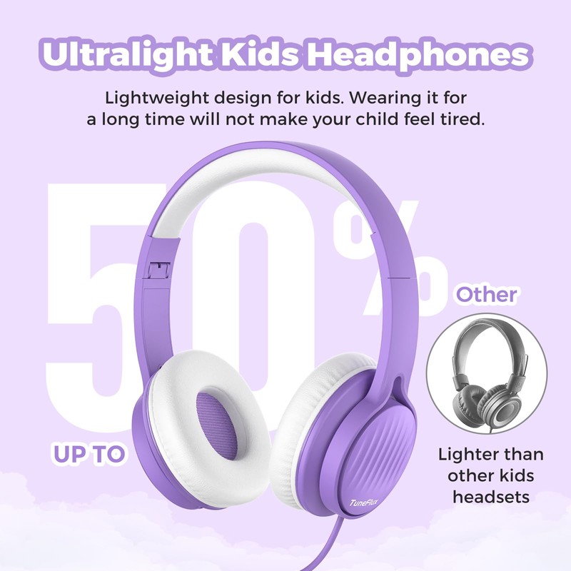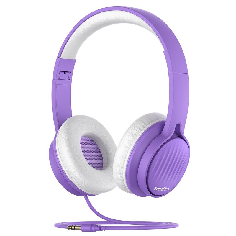 TuneFlux TuneFlux Upgraded Kids Headphones, Wired Toddler Headphones, 85dB Limited Volume On Ear Headphones, Portable Foldable Design, Stereo Sound Kids Headphones for School/Tablet/Travel-Purple