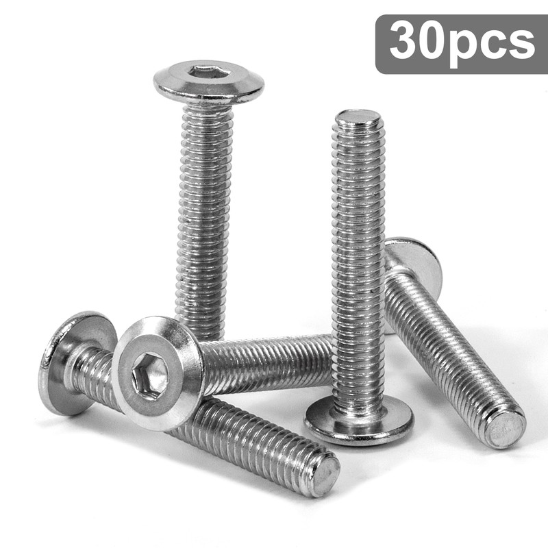 - 30 pieces M6 x 35 mm flat head screws. Head Shape: Flat Head Drive: Hex Socket