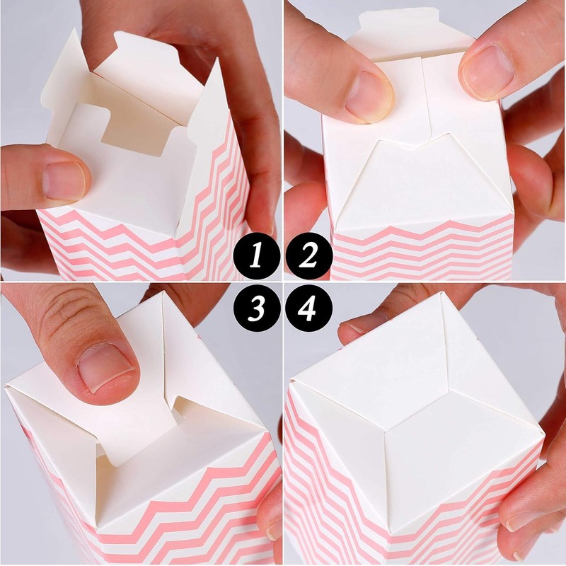 - El artículo es un paquete de 36 piezas. Cajas de palomitas hechas de cartón duradero, las cajas se pueden doblar para que se almacenen fácilmente.