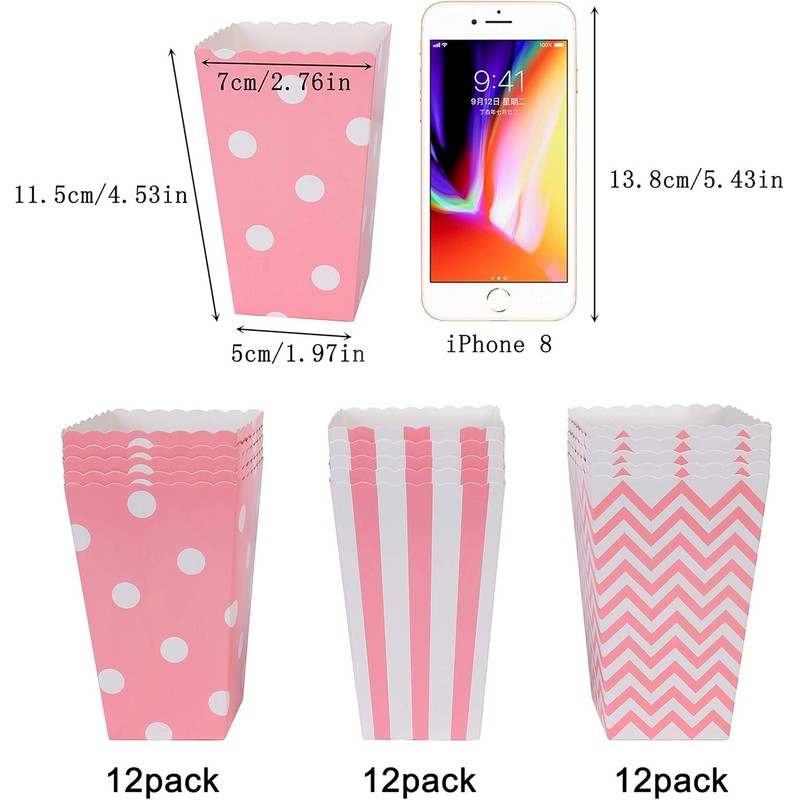 - Lovely set: pack of 36 pink popcorn bags, size: 7 x 5 x 11.5 cm / 2.75 x 2 x 4.5 inches. Create a fun dessert table and can please cute and unique party.