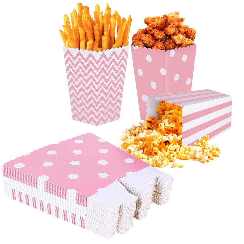 Tunejoy Popcorn Boxes Pack of 36 Popcorn Bags Cardboard Candy Container for Party Snacks Sweets Popcorn and Gifts 12 x 7 cm (Pink)