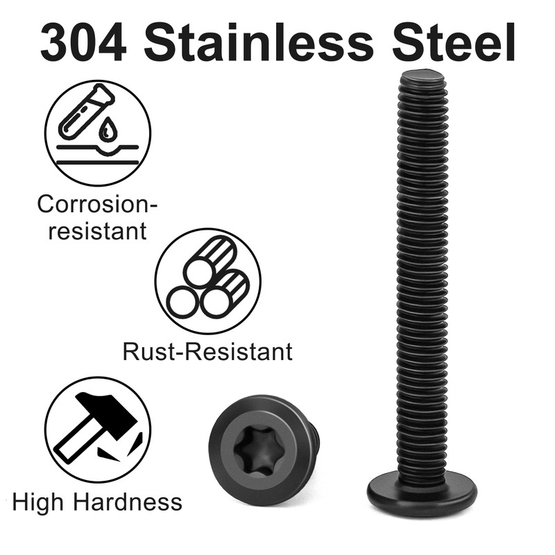 - High strength: flat head screws trox made of high quality A2 V2A stainless steel, electrophoretic black coating, which provides excellent corrosion resistance and wear resistance, suitable for various harsh working environments