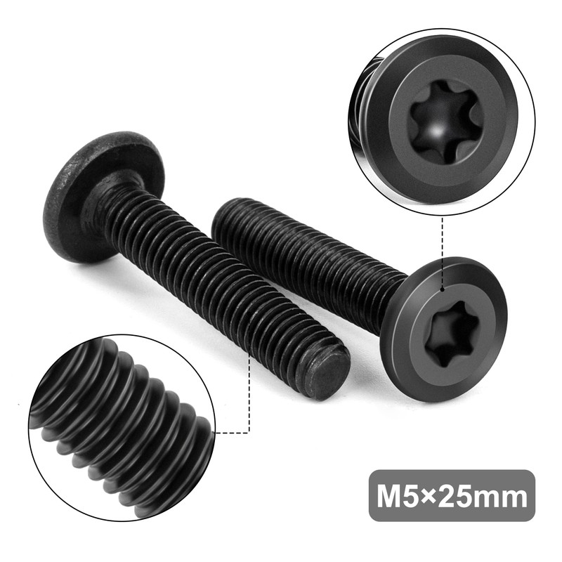 - Specifications: Pack of 30 M5 x 25 mm black flat head screws with trox. Head Shape: Flat Head Drive Type: Torx Equipped with T25 Allen key to meet daily needs