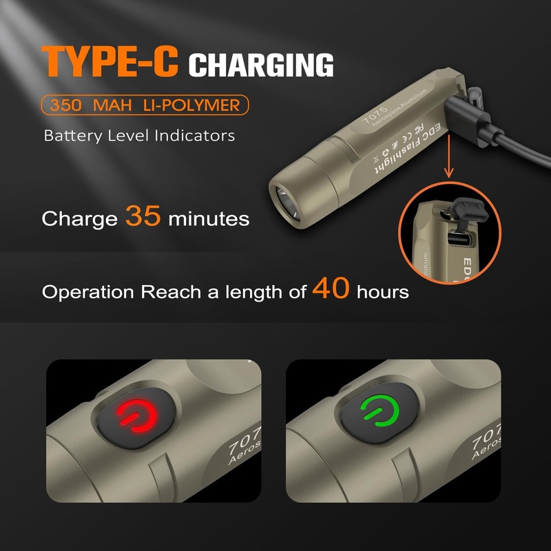 - Ultra-long Battery Life :TUNENGE keychain flashlights charging time is only 45 minutes and the lighting can last for up to 40 hours, so that you don't have to worry about sudden power outages when you are hiking or walking at night. It is also very suitable for pet owners who go out to walk their dogs at night