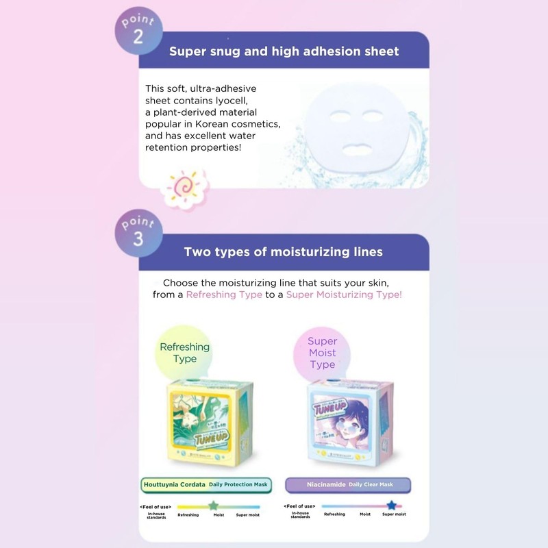 - Ultra-soft lyocell sheet – Skin-fitting, plant-derived material ensures efficient delivery of toner and essence.