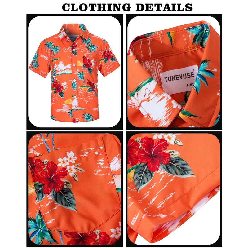 TUNEVUSE Little and Big Boys Hawaiian Shirt and Short Set, Summer Printed Kids Cabina Set with Hats, Orange09, 3T - 4T