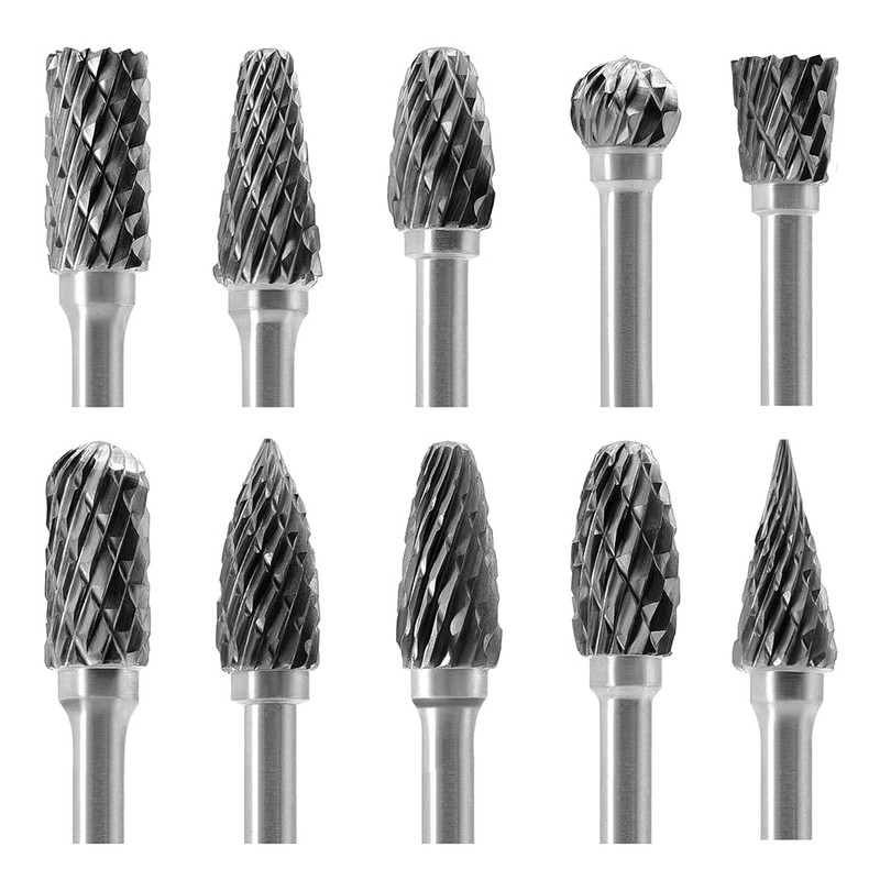 - Tungsten carbide - hardness, high strength, and durability. The service life is 8 times longer than that of HSS tool. Pilim double cut carbide rotary burr set can be used on all types of metals, including stainless steel and hardened steel, as well as wood, jade, marble, and bone.