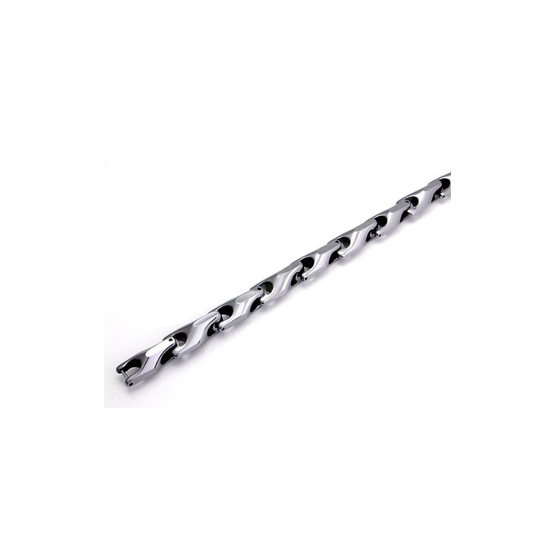 This is a uniquely designed tungsten carbide bracelet. With the durability of tungsten carbide, this bracelet will always stay polished. It's perfect for people with active lifestyle.
