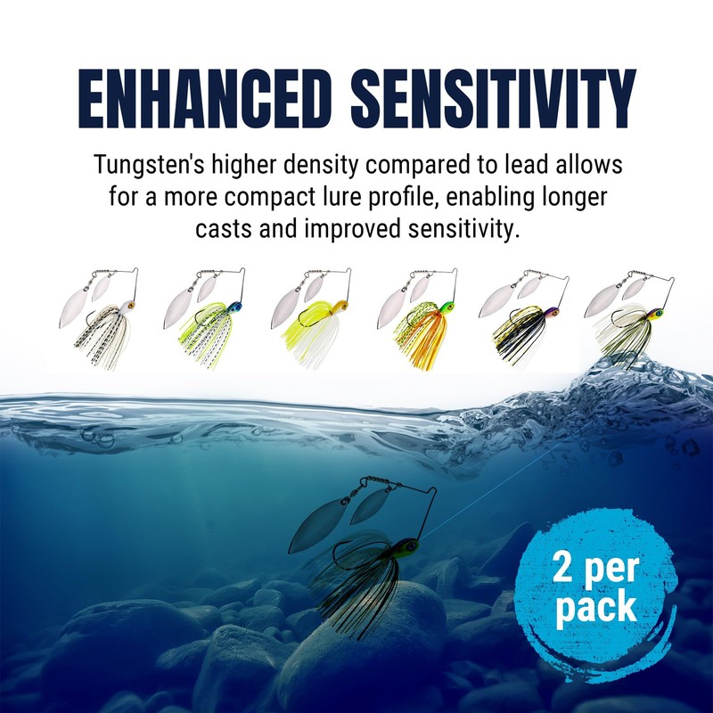 - Durable Tungsten Build for Superior Performance – Made with high-density tungsten, this spinner bait ensures better sensitivity and a compact profile for longer casts. Paired with rust-resistant blades, it's built to last through countless fishing trips.
