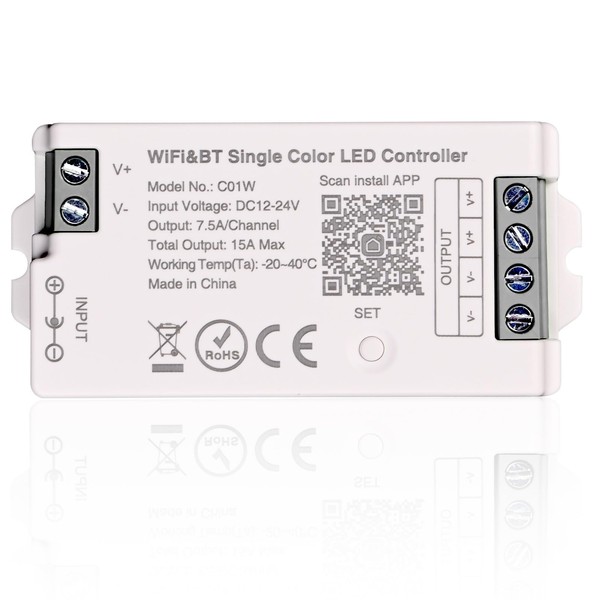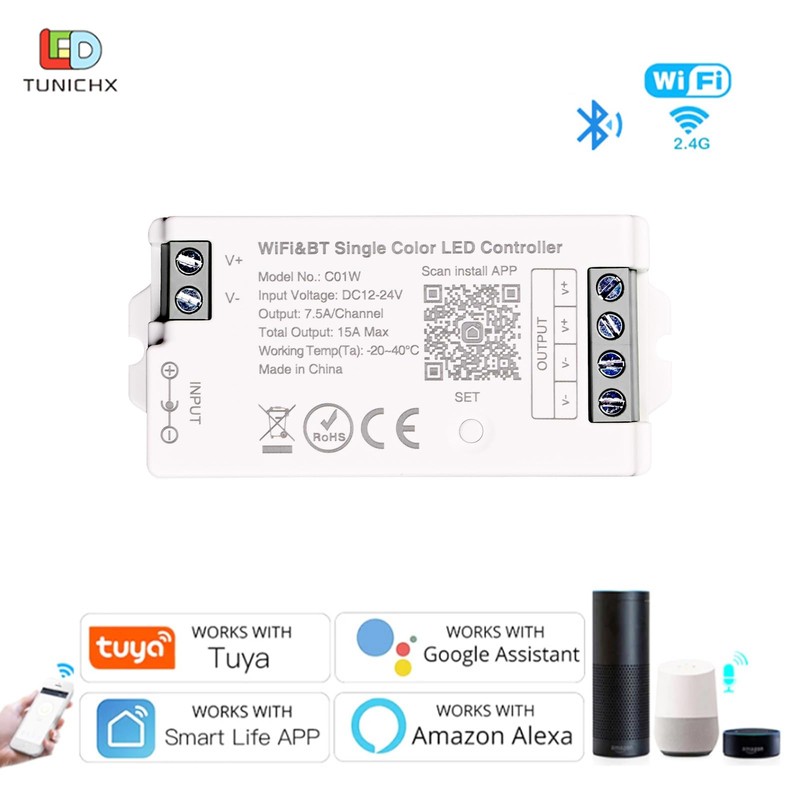 TUNICHX C01W Monochrome LED Strip Controller 2.4 GHz WiFi Group Controller Alexa Google Home Smartphone APP Control Compatible with WR02RF LM007 LM087 FUT006 B1 Mi-Boxer/Mi-Light Dim Remote