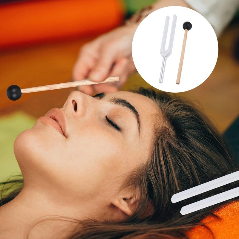 Apply the vibrating fork to joints/muscles to release tension and restore energy flow. Ideal for deep tissue resonance work and chakra balancing.