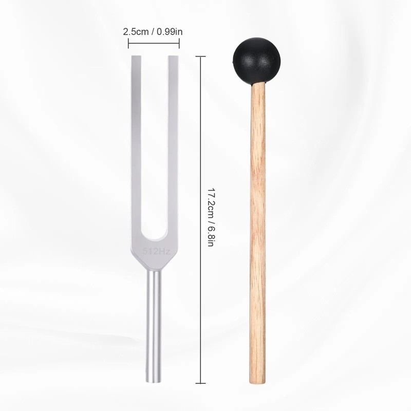 Tuning Forks for Healing,512 HZ Tuning Fork,Aluminium Alloy,Silver,with Wooden Gong Mallet, Hexagonal Screwdriver and Silver Cloth Bag,Sound Healing Therapy Tool Set for Music Therapy