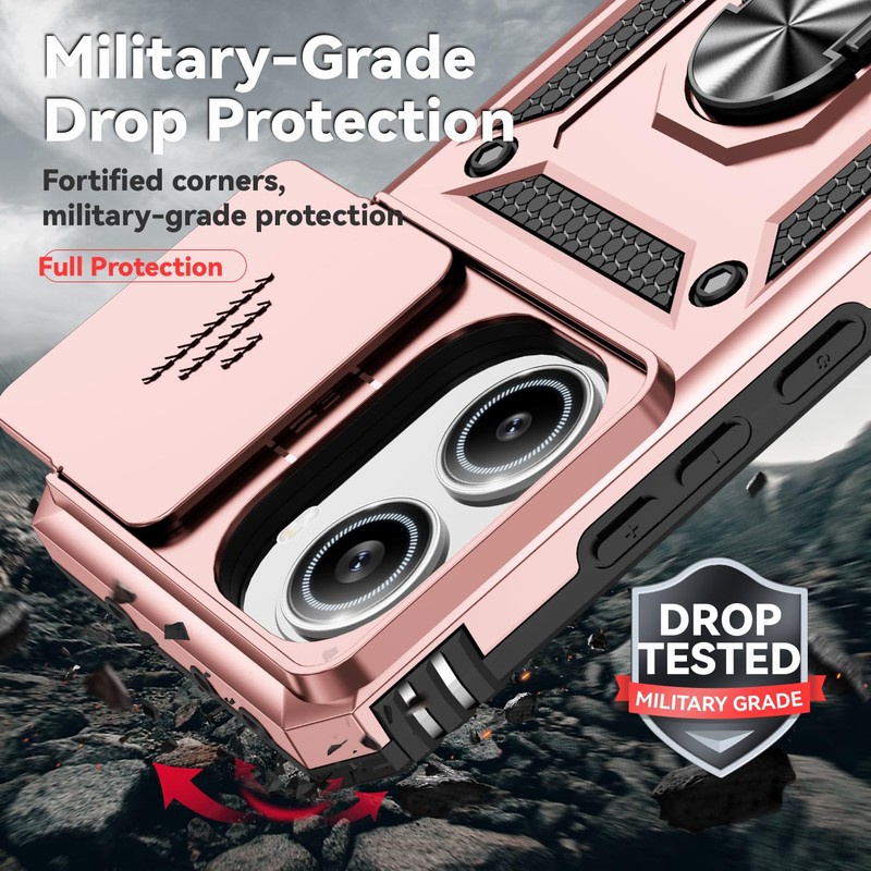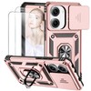 TUNKARMOR Funda para Redmi Note 14 4G (No aplicable a 5G) Case - Incluye 2 películas Protectoras templadas con Ventana Deslizante de protección de la cámara y Soporte para el teléfono - Rosa