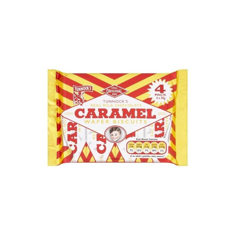 Tunnock's Real Milk Chocolate Caramel Wafer Biscuits 4 x 30g