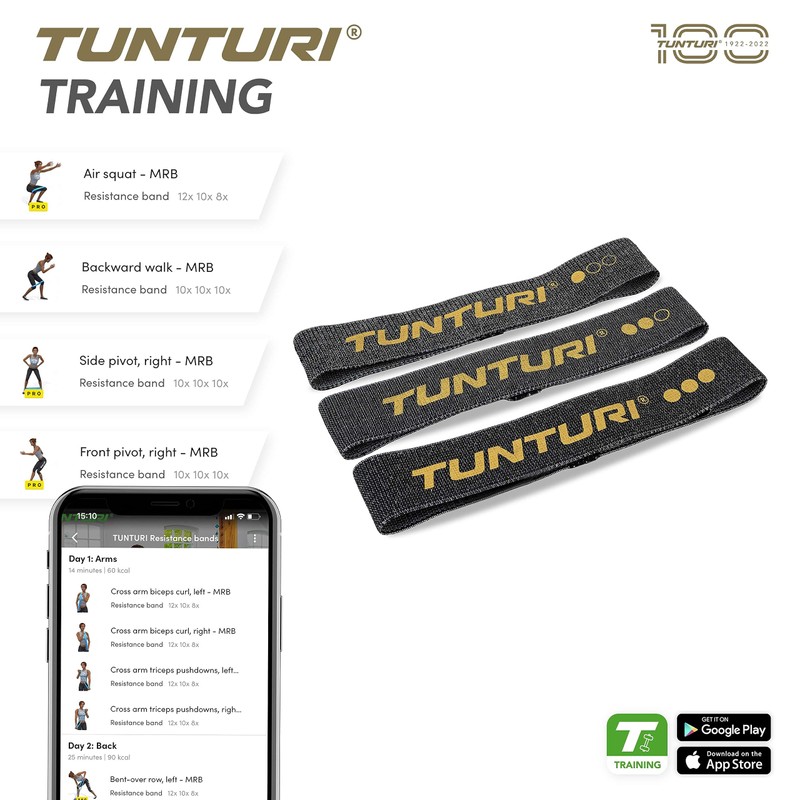 Tunturi Centuri Set of 3 Power Bands, Resistance Bands with Strength 4-14 kg, Fitness Band, Training Band for Strength Training