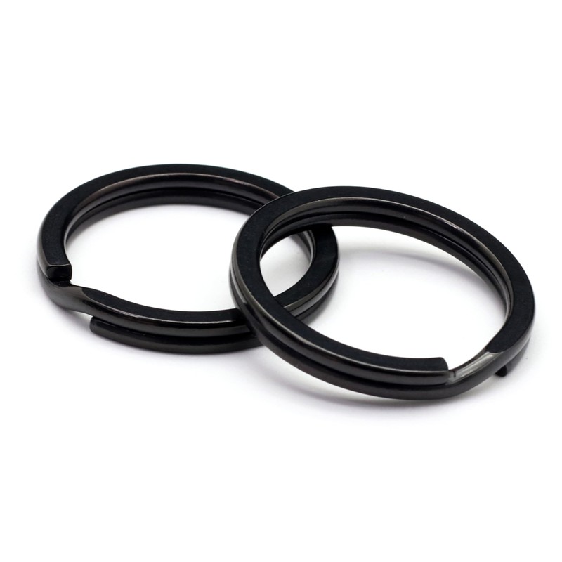 - Heavy and luxurious black, Flat-surfaced ring. It is a double ring ideal for black titanium key rings, carabiners, and keychains.