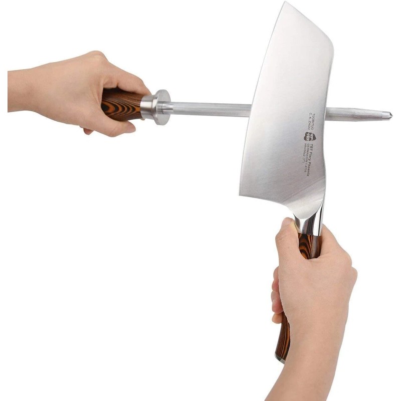 - Thoughtful Design - With 9” of length, the steel is ideal for most sized knives without getting cumbersome or poking too far out of your knife bag or woodblock. Tiny grooves along the steel’s surface work to bring back and straighten the edge.