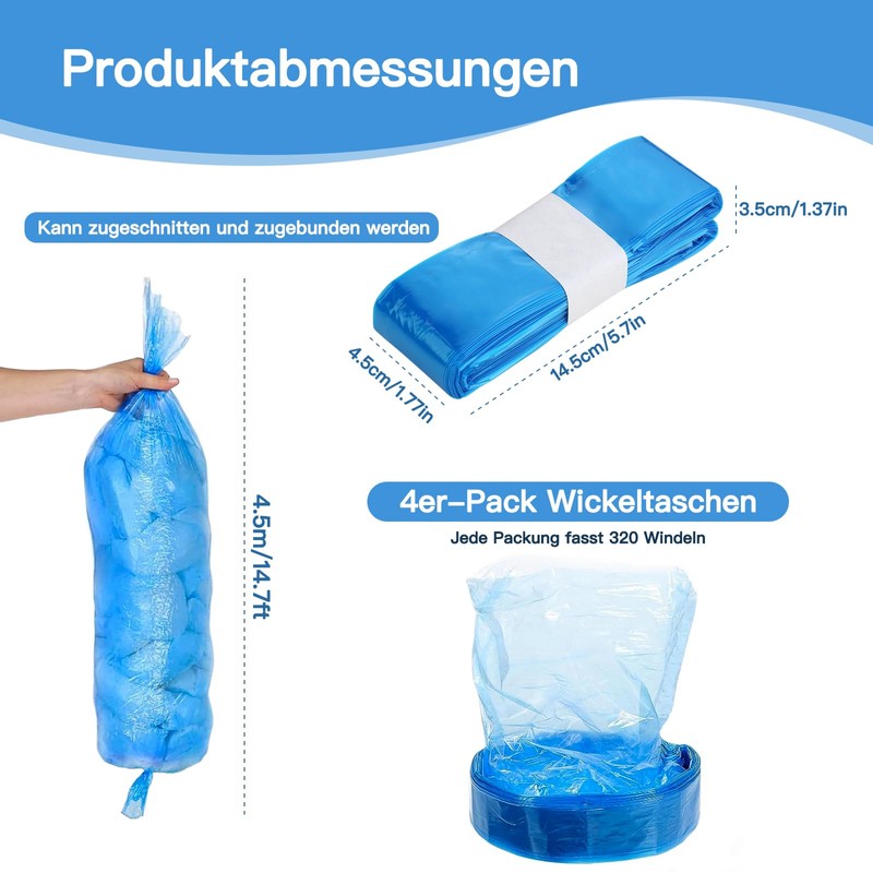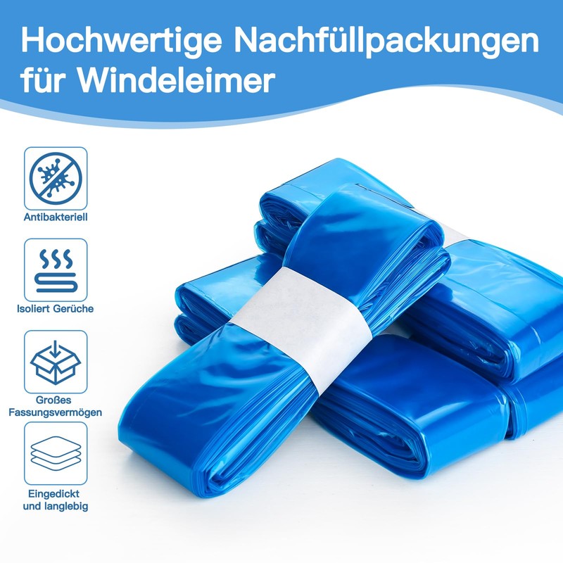 - High Quality Material The diaper bags are made of durable, puncture resistant and waterproof new PE material, not easy to break, elastic, puncture resistant, waterproof, drip-free, and can be used safely for a long time. They consist of 7 layers of material. Therefore, our nappy bin refill offers unparalleled odor protection.