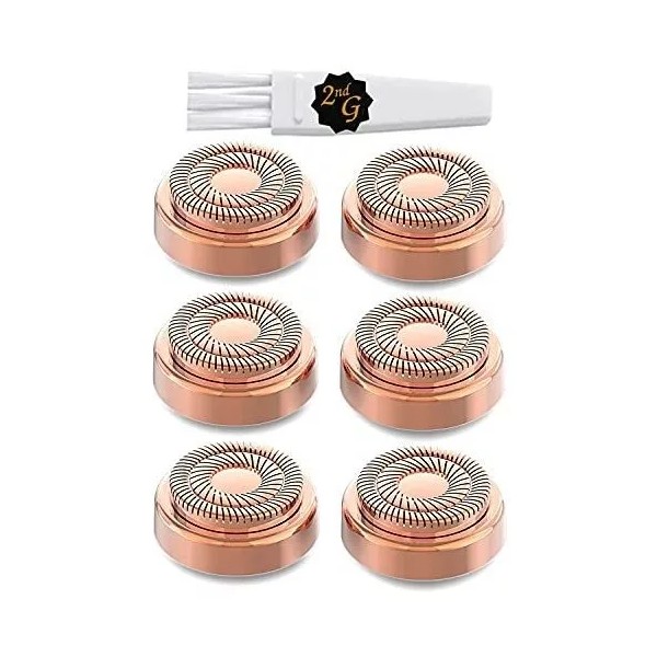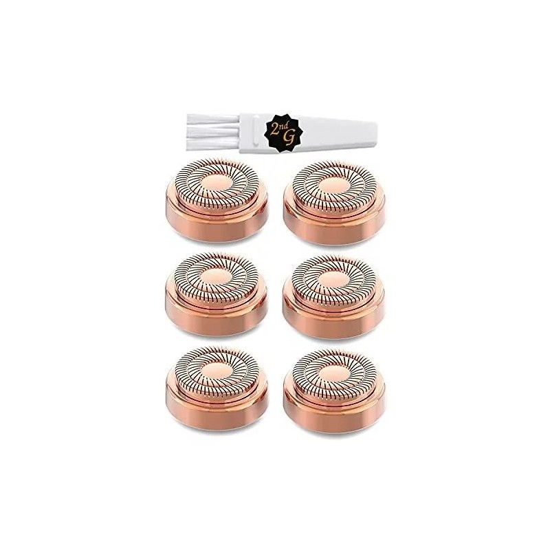 Embalaje limpio y ordenado Cada paquete contiene 6 cabezales de repuesto para depiladores faciales hipoalergénicos y 1 cepillo de limpieza de forma gratuita.