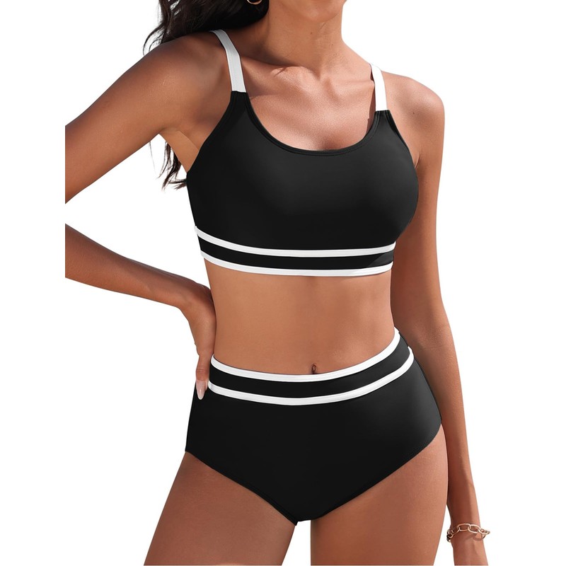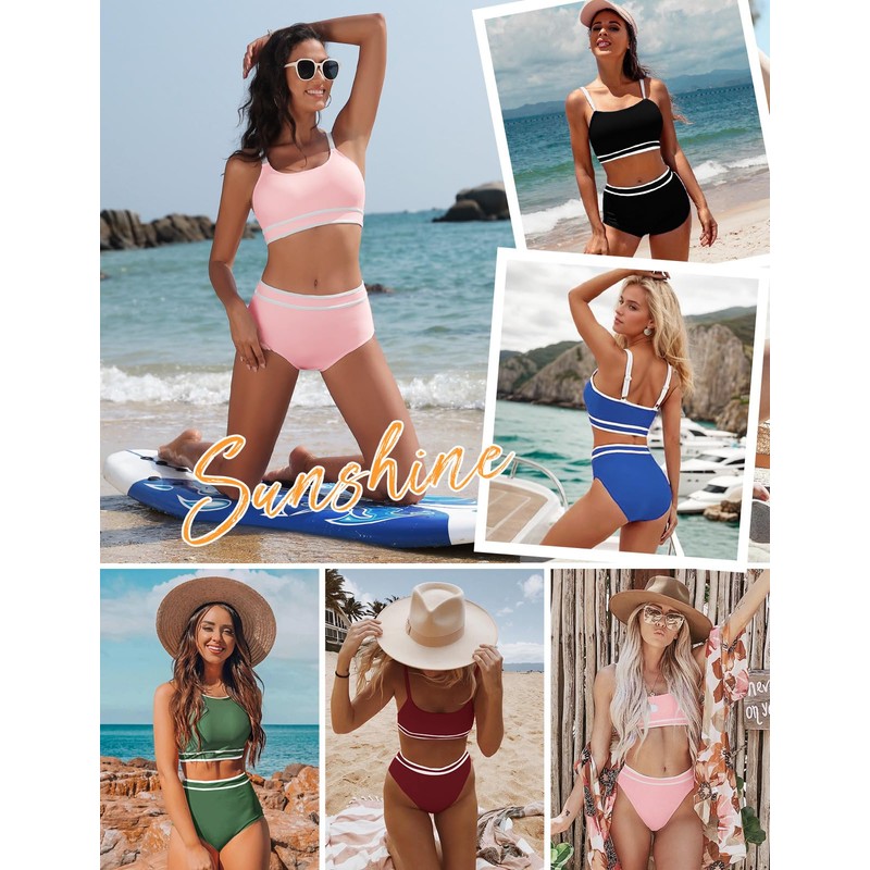 - 【High Waisted Bikini Bottoms】The two piece swimsuit for women is designed with high waisted control your tummy meanwhile shapes your butt while flattering your waistline better. This athletic color block swimsuit is designed with contrast bright color which offer charming femininity. Make yourself a beautiful focal point on the beach.