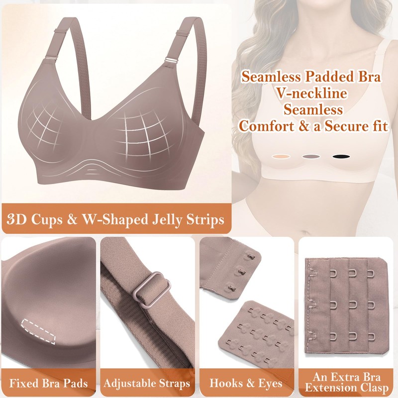 • 【Semi-fixed Bra Pads and Additional Bra Extenders】 Our seamless padded bras have semi-fixed pads that retain their shape stay in place when rolled up. The deep V-neckline accentuates women's elegant curves, gathers and shapes the breasts into perfect curves, and is suitable for most cup size. We will give an extra bra extension clasp, so that the user can better fit their breasts and provide a fuller and more comfortable wearing experience.