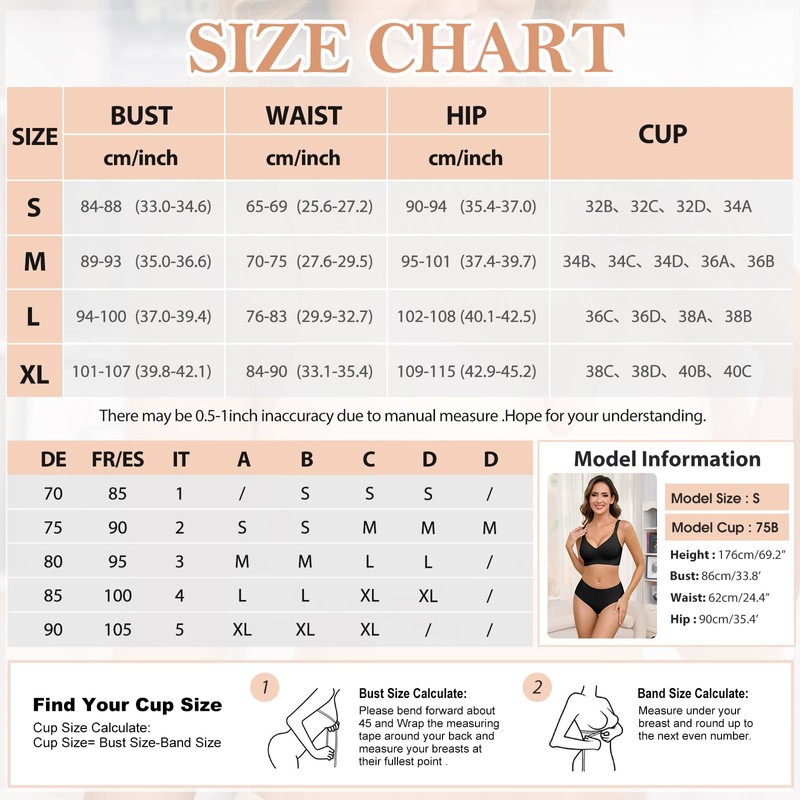 • 【Bra and Briefs Sets Women】 Our t shirt bras for women comes with a same Seamless Knickers, suitable for a wide range of occasions, this soft and comfortable bra provides just the right amount of support, whether it's for everyday life such as shopping, daily work, at home, or for low-impact exercise such as yoga and Pilates.