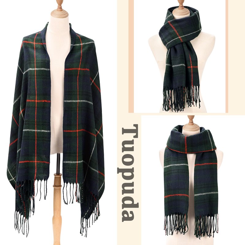 Tuopuda Women's Scarf Checked Pashmina XXL Stoles Oversized Autumn Scarf Winter Scarf Checked Tartan Shoulder Scarf Plaid Blanket Scarf Fashion Scarf Soft Warm Oversized Fringe Poncho, Green