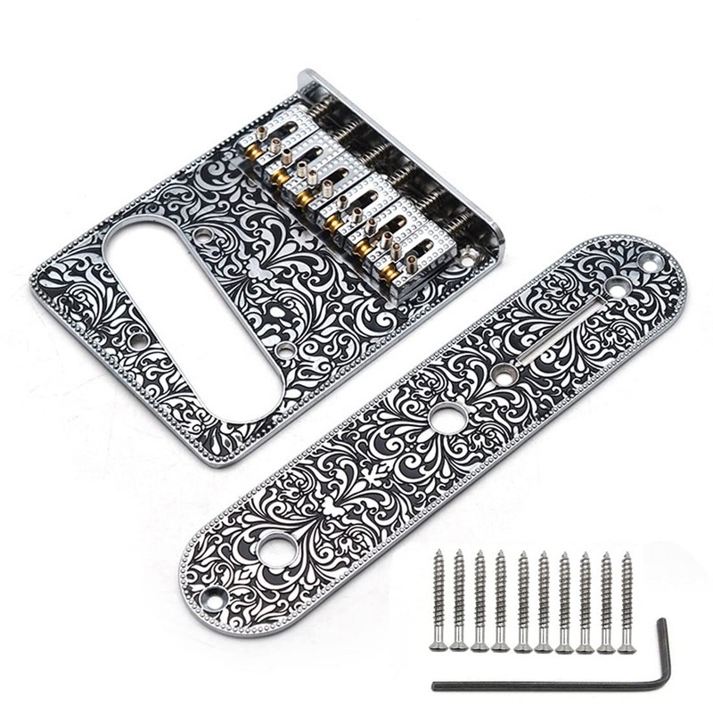 Surface engraving bridge plate and Control Plate with six adjustable block-style roller saddles. Elegant and beautiful printing pattern design adds unique style to your guitar. Adjustable intonation and saddle height, brand new and in mint condition. Screws and Allen wrench included. Great for your replacement or DIY guitars.