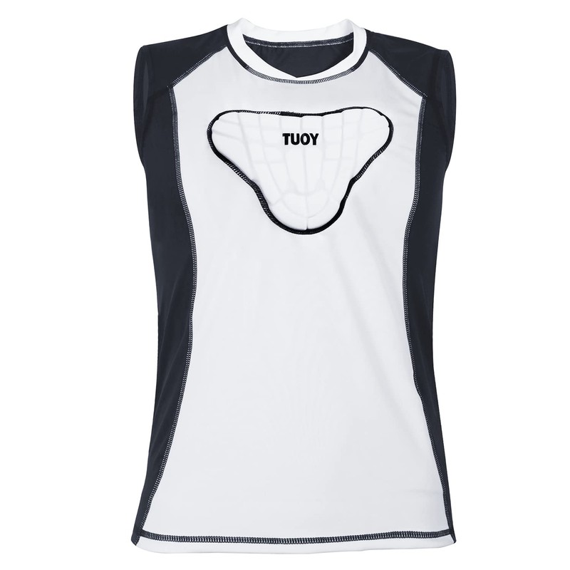 TUOYR Padded Compression Shirt Chest Protector Heart Guard Sternum Protective Sleeveless Vest for Football Baseball Lacrosse and Goalies - Youth & Adult Sizes Black-White