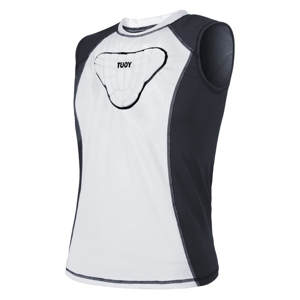 TUOYR Padded Compression Shirt Chest Protector Heart Guard Sternum Protective Sleeveless Vest for Football Baseball Lacrosse and Goalies - Youth & Adult Sizes Black-White