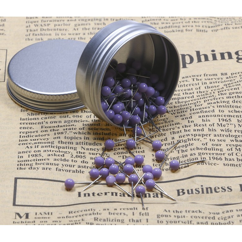 Tupalizy 1/8-Inch Map Tacks Plastic Beads Head, Steel Point, 120-count (Purple)