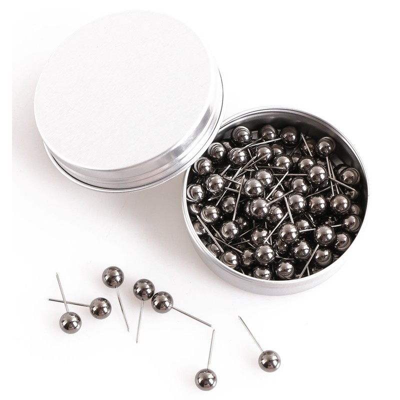 Tupalizy 100PCS 1/4 Inch Small Round Head Map Tacks Pins for Home Office Bulletin Cork Board Use and DIY Craft Project (Black Silver)