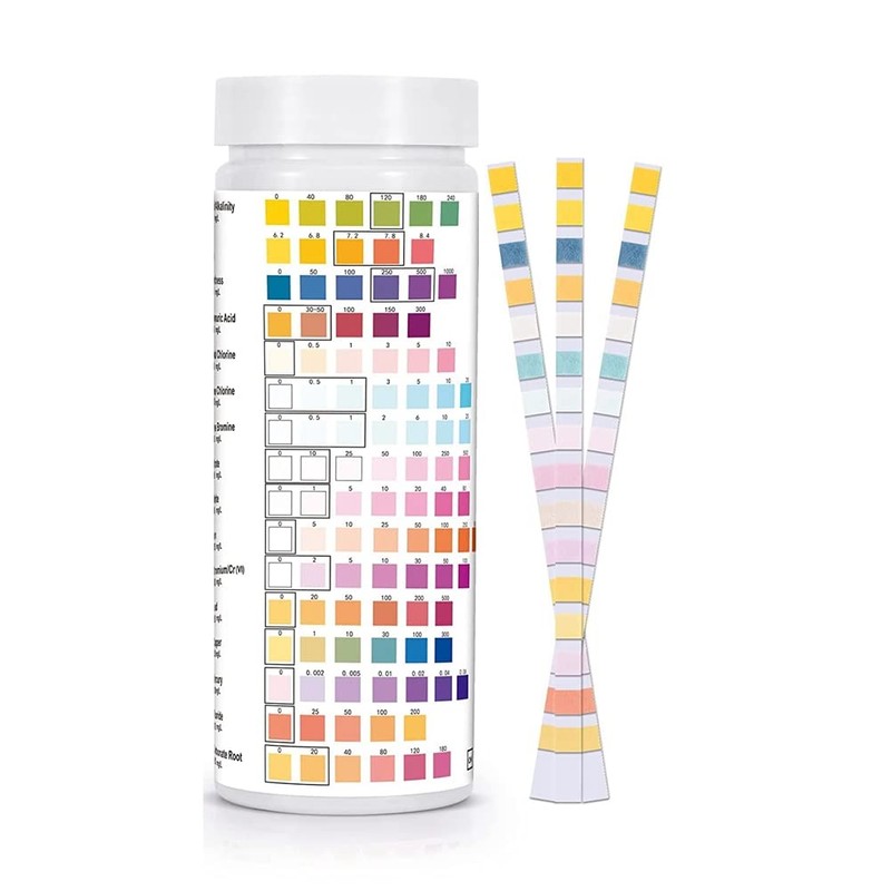 - Water testing kits for drinking water is equipped with 16 major parameters which including:total alkalinity/PH/hardness/cyanuric acid/total chlorine/free chlorine/free bromine/nitrate/nitrite/iron/chromium/lead/copper/mercury/fluoride/carbonate root.