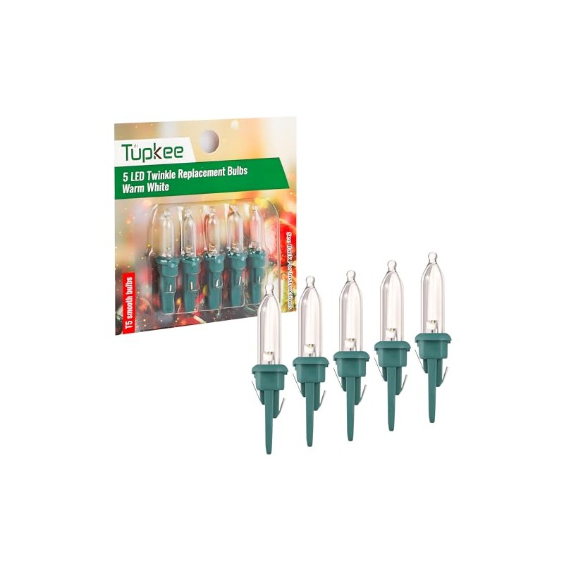 Tupkee LED Replacement Twinkle Bulbs - Warm White – T5 Smooth Bulbs - 5 Bulb ...