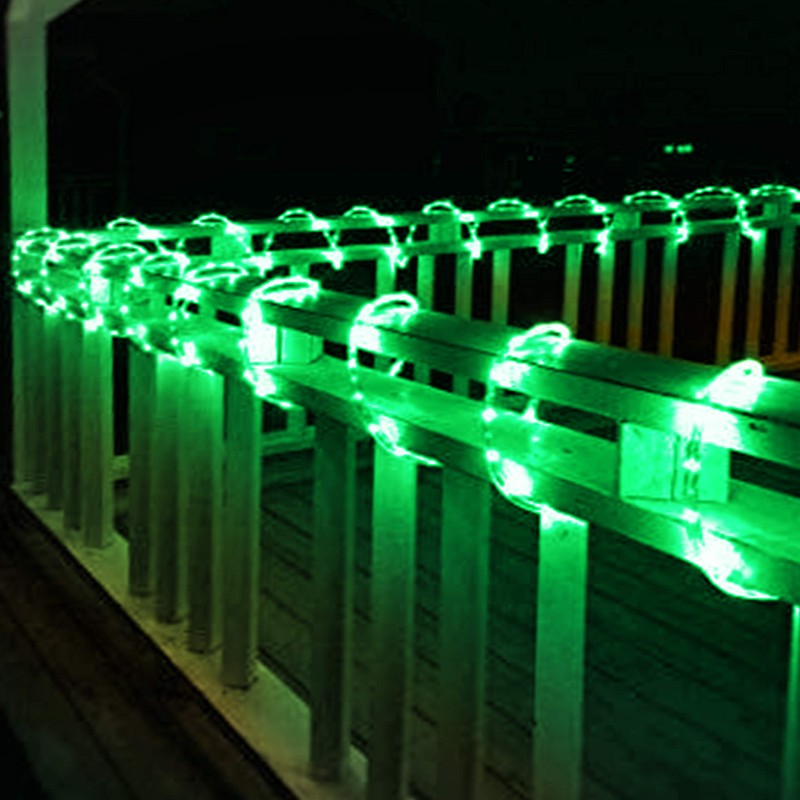 - COLOR AND WATTAGE - Green PVC tube and Green LED bulbs - 24 feet rope light is 516.4 Wavelength, 195 Lumen – 9.6 Watts per set of 24 feet string rope lights - 120V 60Hz AC Plugin