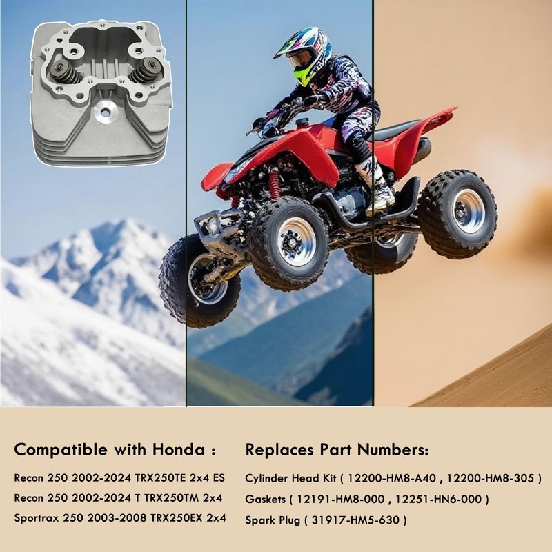- Replaces Part Numbers: Cylinder Head Kit ( 12200-HM8-A40 , 12200-HM8-305 ) , Gaskets (12315-HN6-010, 12191-HM8-000 , 12251-HN6-000 ), Spark Plug ( 31917-HM5-630 )