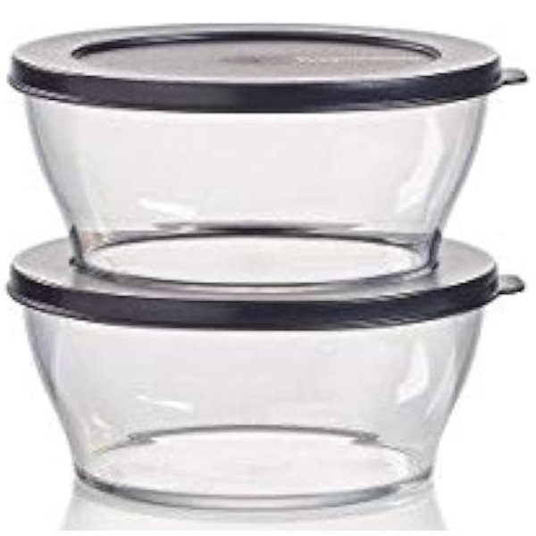 Tupperware Clearly Elegant 4.2 cup 990ml Bowl Set of 2 Black Seal