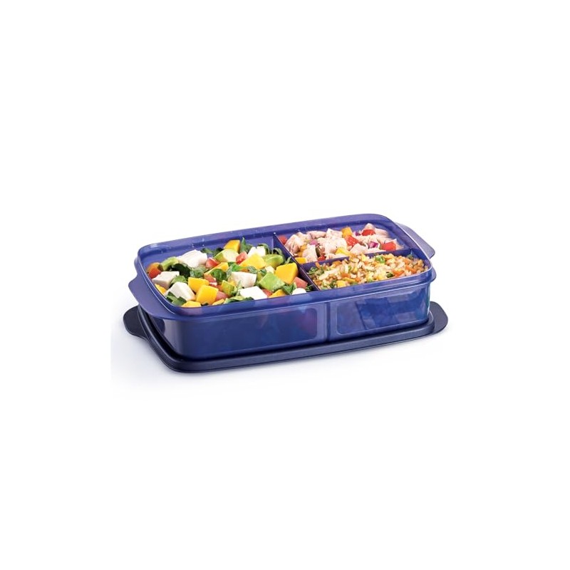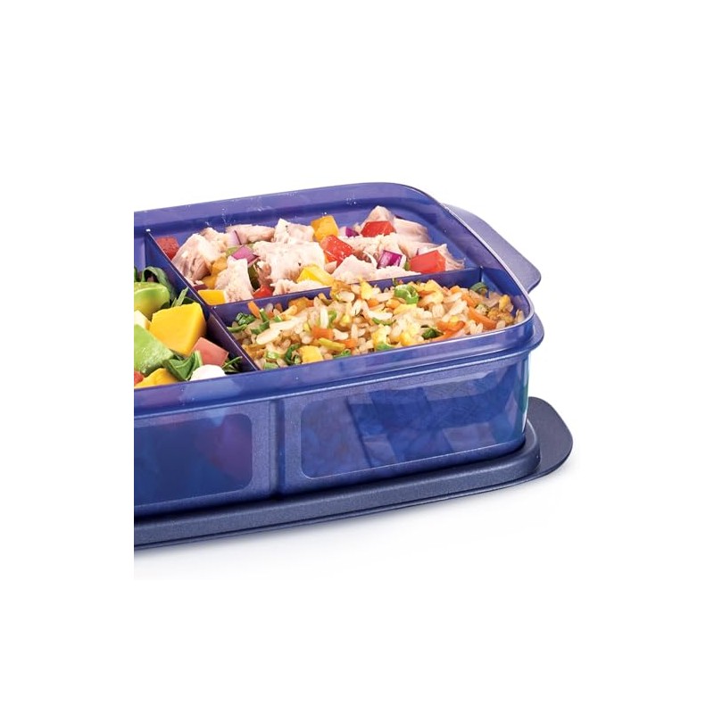 • Espacios separados para llevar todo en un mismo producto no usar en microondas o congelador Alto: 4.5 cm Ancho: 15 cm Largo: 26 cm Libre de BPA Productos 100% Original Tupperware