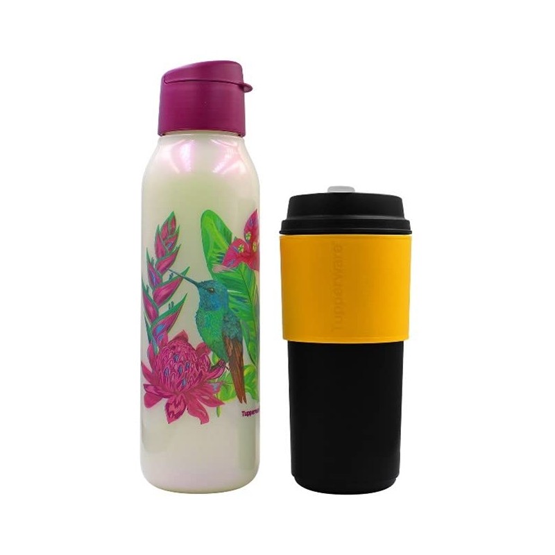 Tupperware Eco Active 350ML Diseño Colibri + Tupperware Eco Vaso 490 ml Color Negro/Amarillo