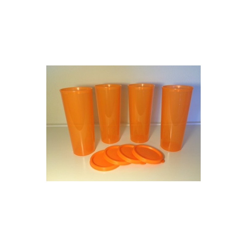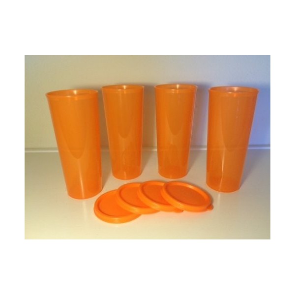 TUPPERWARE - Juego de 4 recipientes clásicos de 16 onzas, color naranja con sellos