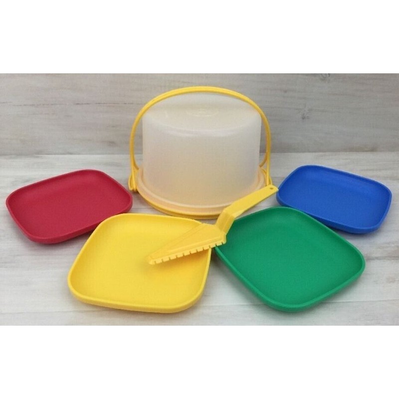 Tupperware Kids Mini Party Set Cake Taker Plates Server Primary Colors