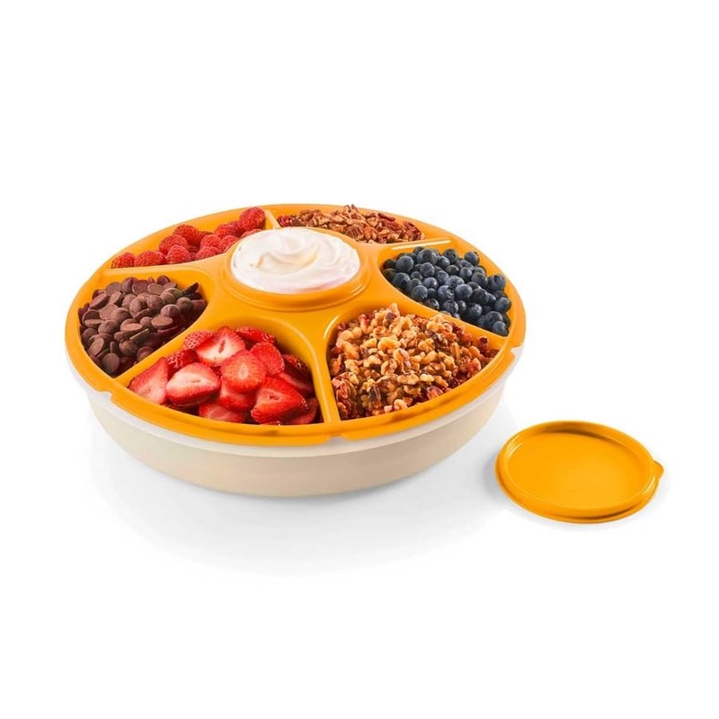 • Healthy snacks: Add some fruits and veggies to the tray with a dipping sauce in the removable bowl.