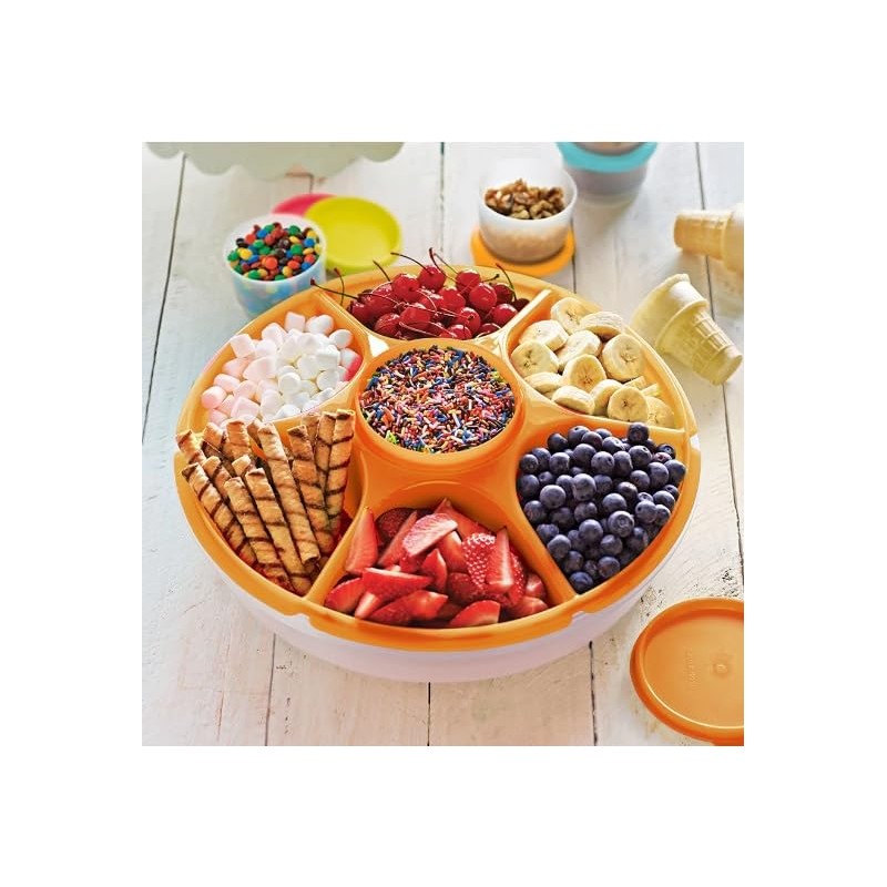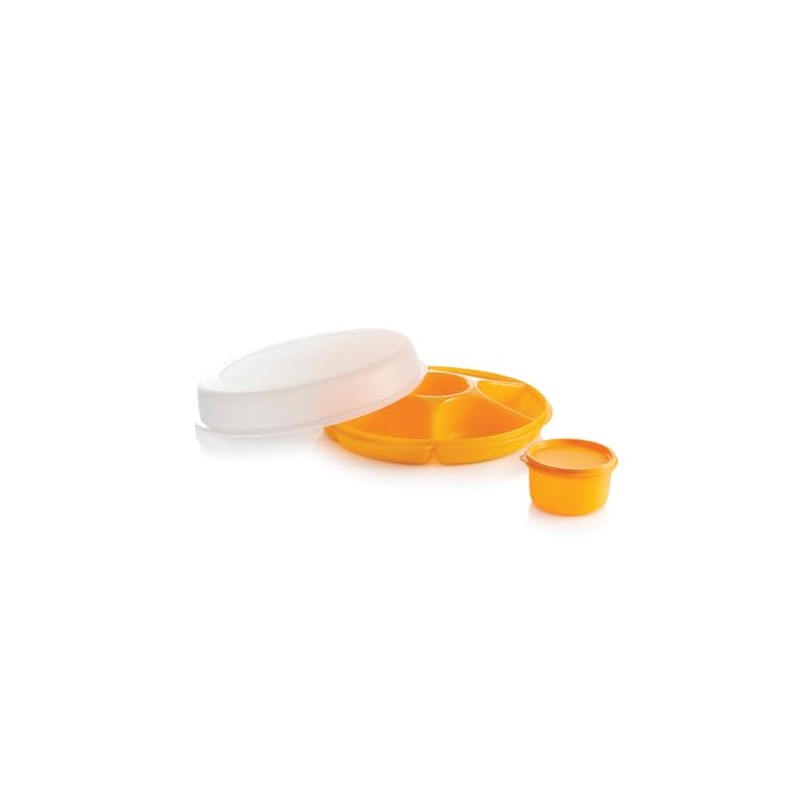 • Tupperware Large Serving Center Divided Tray 13 Inches with Serving Cup in Papaya