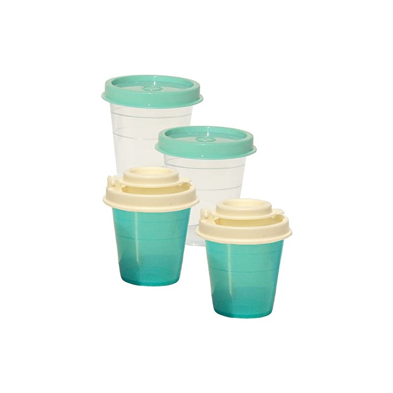 Tupperware Minis Midgets Salt and Pepper Shakers and Storage Containers Set Teal