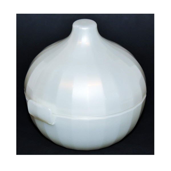 • ''' Tupperware Onion Keeper - Pearl White.#||# Approximately 5 Inches Across by 5 Inches Tall.#||# Hinged and Locking.#||# Dishwasher Safe and BPA-Free.'''