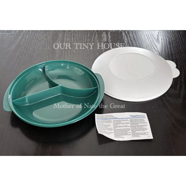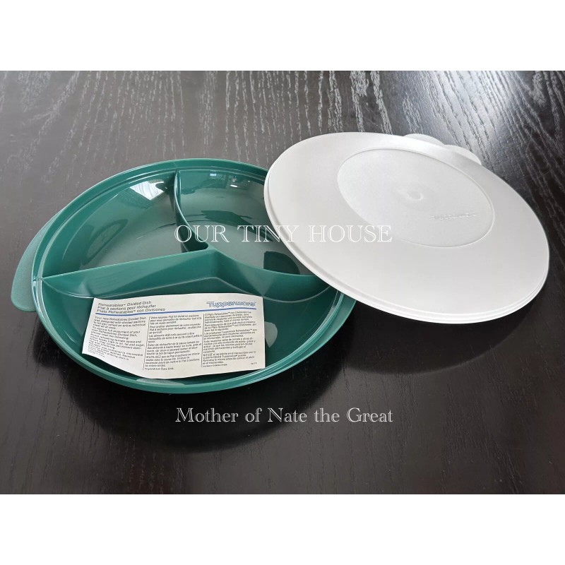 Tupperware Reheatables Divided Plate w/ Seal Microwave Safe Dish Green Vintage